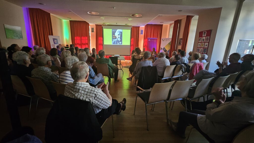 Über 50 Gäste füllten den Schönbornsaal, als Dr. Helmut Luft aus seinem Buch „Jenseits von 90, das Versagen des Körpers und die Reifung der Person im hohen Alter“ las. Die Veranstaltung war Teil der kooperativen Zusammenarbeit von Volksbildungsverein e.V. (VBV) und SeniorenNachbarschaftsHilfe e.V. (SNH), die seit 2024 besteht und sich als Gewinn für Hofheim erwiesen hat.